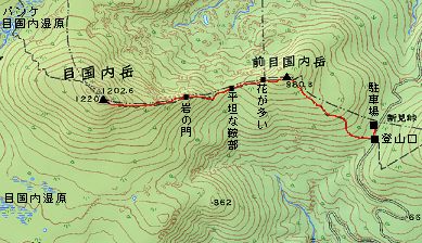 目国内岳周辺地図 YAHOO地図 国土地理院