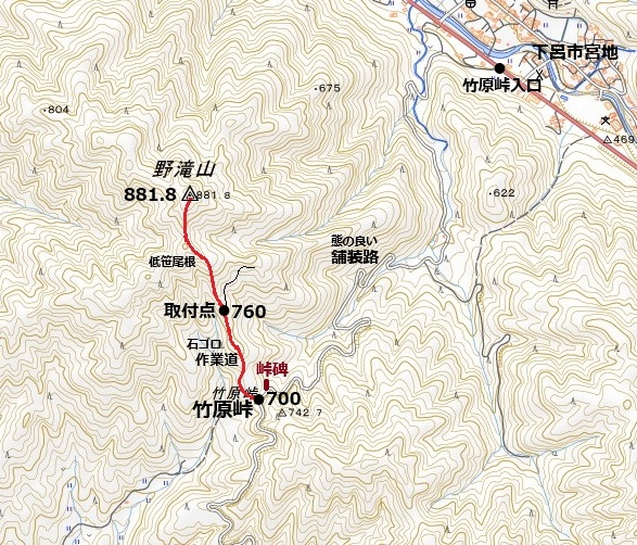 0:30 竹原峠(11:20)→(11:30)取付点(-)→(11:50)野滝山