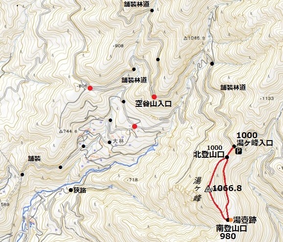 竹原峠から乗政経由で湯ヶ峰の山頂駐車場に向かう。